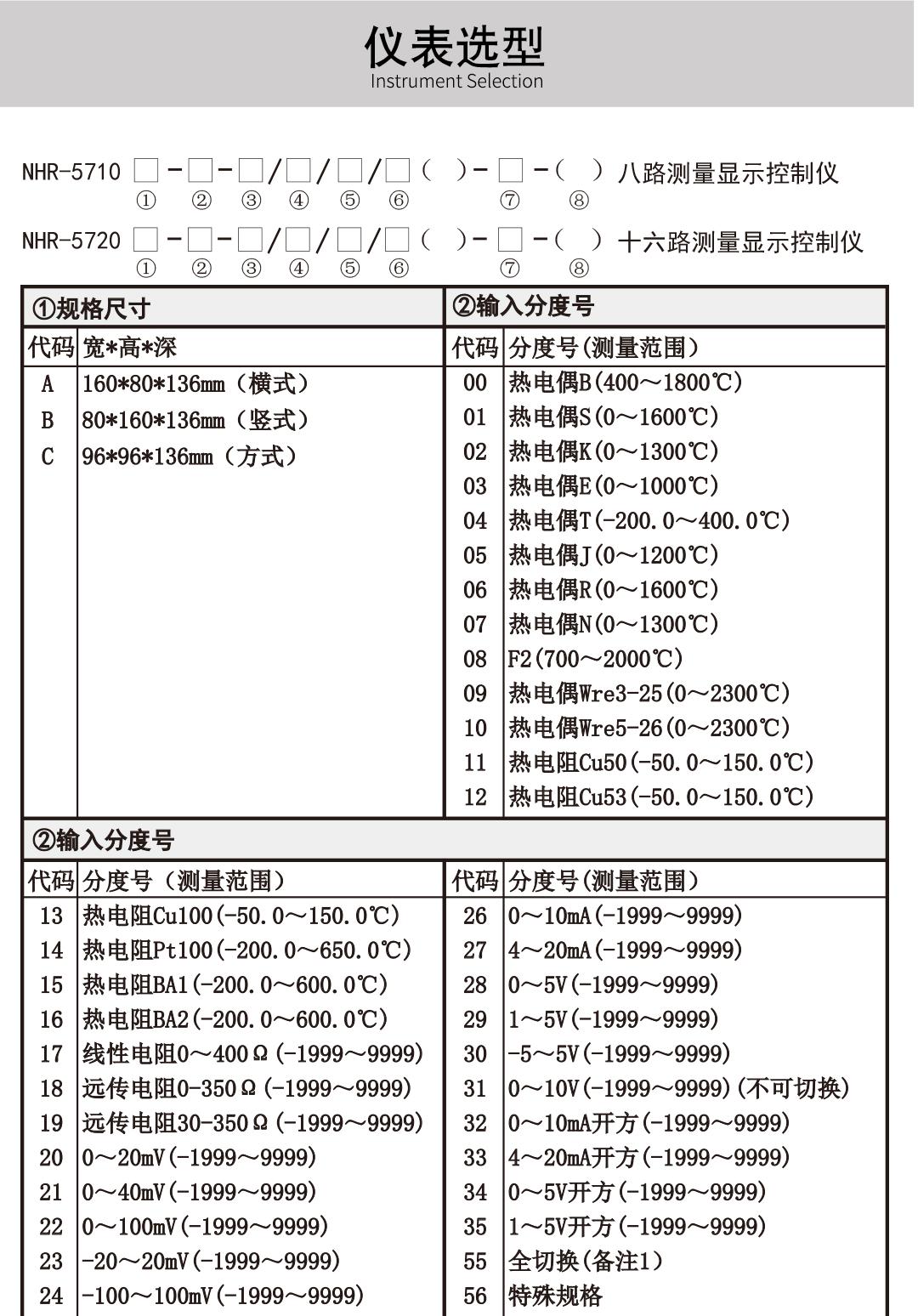 NHR-5700系列多回路数字显示控制仪采用了表面贴装工艺,全自动贴片机生产,具有很强的抗干扰能力。本仪表支持多种信号类型输入,可与各类传感器、变送器配套使用,实现对温度、压力、液位、速度、力等物理量的测量显示,可巡回检测8~16路测量信号,带8路或16路“统一报警输出”、“16路分别报警输出”、统一变送输出”、“8路分别变送输出”功能、485/232通讯等输出功能,适用于需要进行多测量点巡回检测的系统。